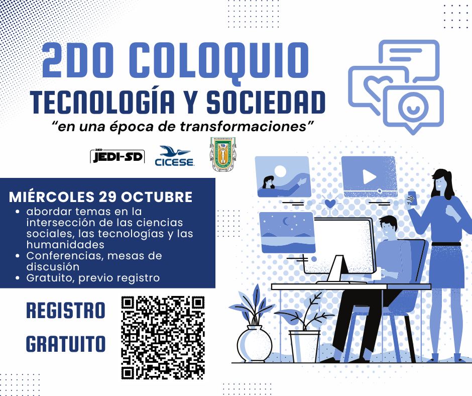 Comunidad universitaria los miembros de la Red JEDI-SD les invita a participar en el 2do Coloquio “Tecnología y Sociedad: en una época de transformaciones” el cual se realizará el próximo miércoles 29 de octubre de 2025 en las instalaciones del CICESE.