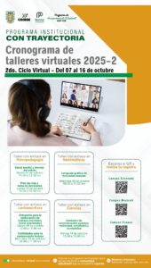 El 𝐏𝐫𝐨𝐠𝐫𝐚𝐦𝐚 𝐈𝐧𝐬𝐭𝐢𝐭𝐮𝐜𝐢𝐨𝐧𝐚𝐥 𝐂𝐨𝐧 𝐓𝐫𝐚𝐲𝐞𝐜𝐭𝐨𝐫𝐢𝐚, dirigido a la comunidad universitaria, te ofrece las siguientes actividades para el 𝟐𝐝𝐨 𝐂𝐢𝐜𝐥𝐨 𝐕𝐢𝐫𝐭𝐮𝐚𝐥, del 07 de al 16 de octubre.