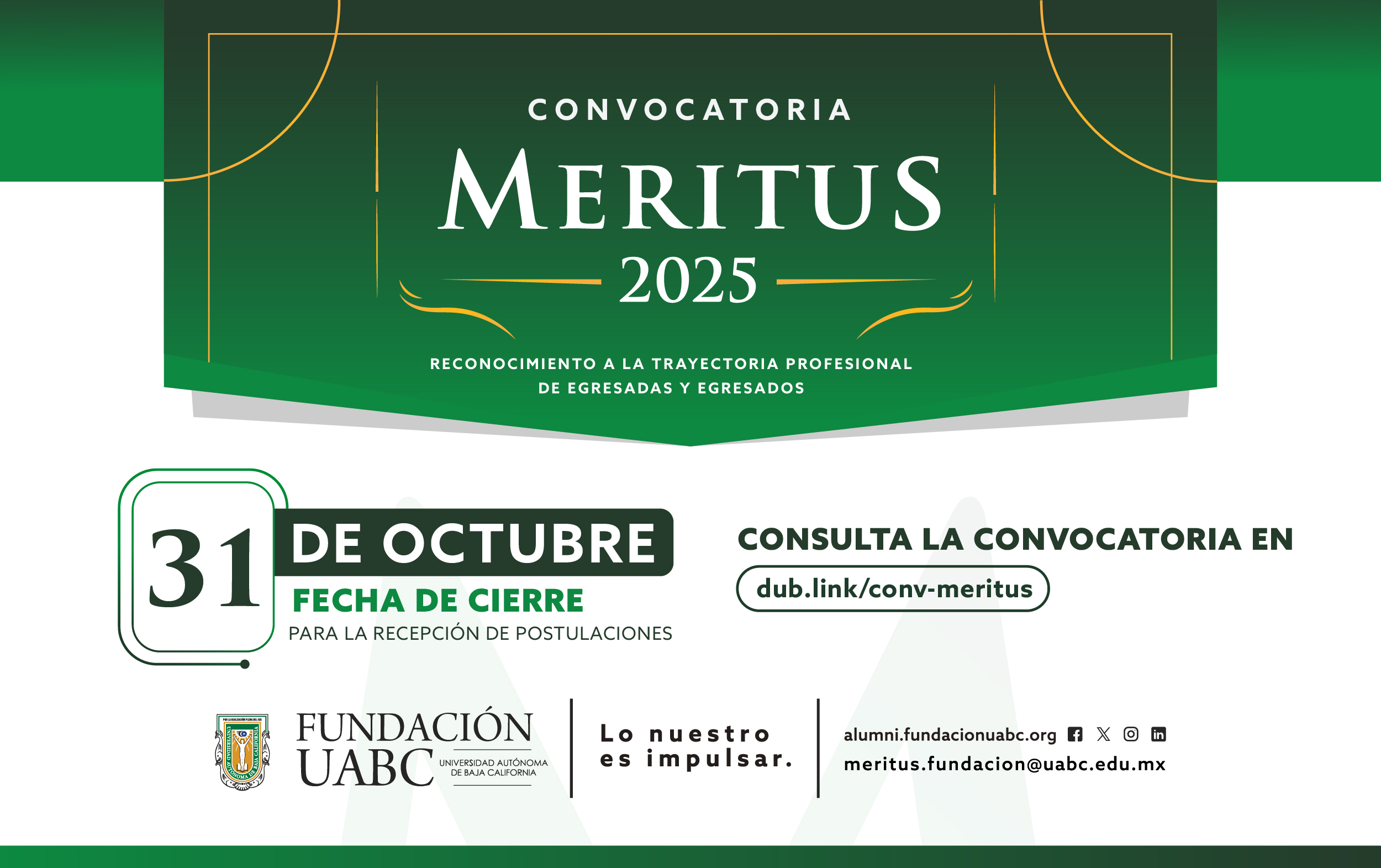 Meritus busca reconocer a egresadas y egresados con trayectorias destacadas a través de este galardón, que es el máximo reconocimiento otorgado por la Universidad Autónoma de Baja California a la comunidad Alumni.
