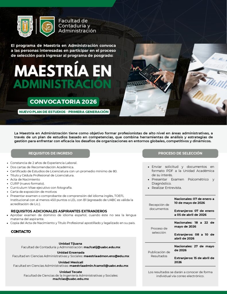 La maestría en Administración inicia este 2026 con un nuevo plan de estudios. Se parte de la primera generación!