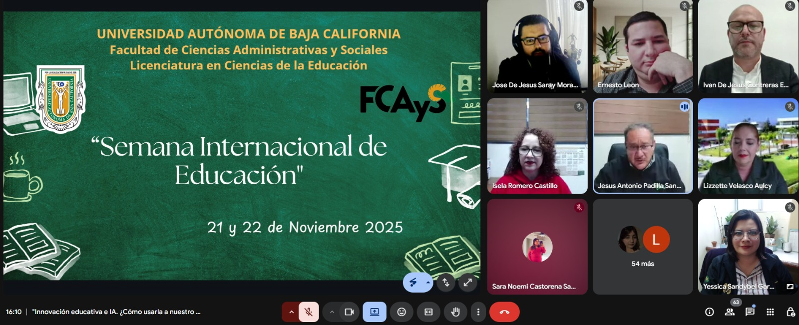 La Semana Internacional de Educación (SIE) realizada en la Facultad de Ciencias Administrativas y Sociales (FCAyS), bajo la organización de la doctora Yessica Sandybel Garduño Espinoza coordinadora de la Licenciatura en Ciencias de la Educación se llevó a cabo los días 21, 22 de noviembre en formato virtual y 29 de noviembre de manera presencial.